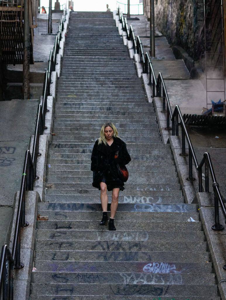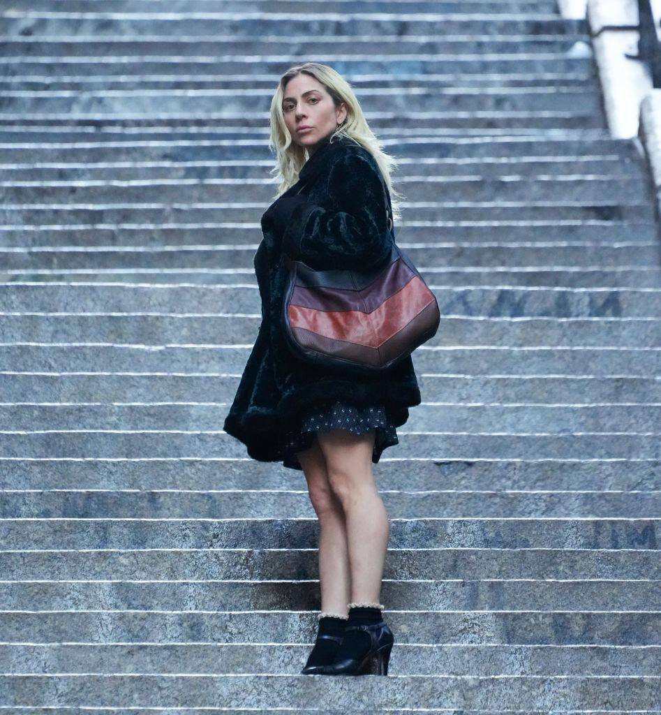 Леди Гага на лестнице из первой части «Джокера» во время съемок продолжения