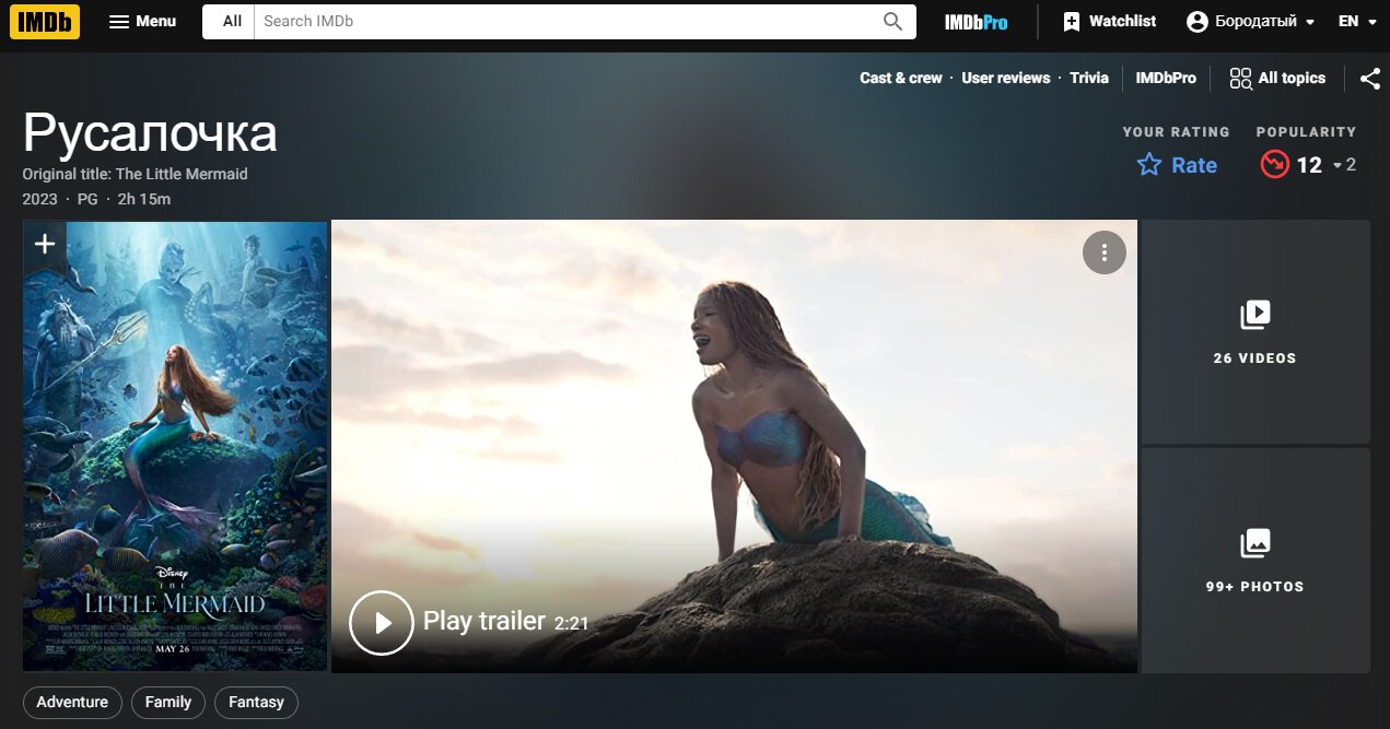 На IMDb нельзя посмотреть зрительский рейтинг «Русалочки».