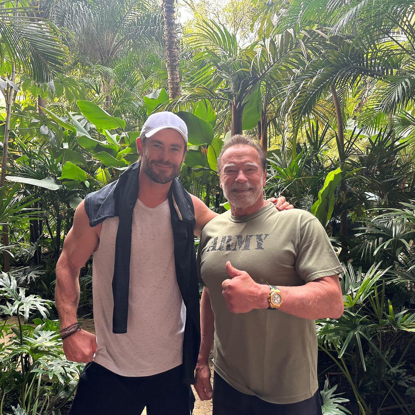 Арнольд Шварценеггер о Крисе Хемсворте на совместном фото: «Посмотри, какой ты накачанный. Дельты. Трицепсы 💪»