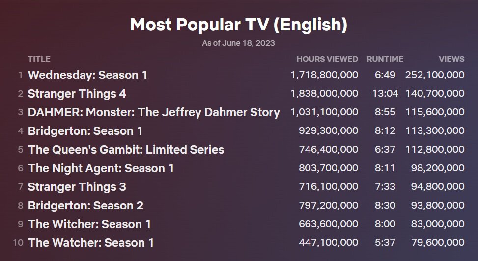 Netflix обновил систему подсчета популярности шоу на платформе.