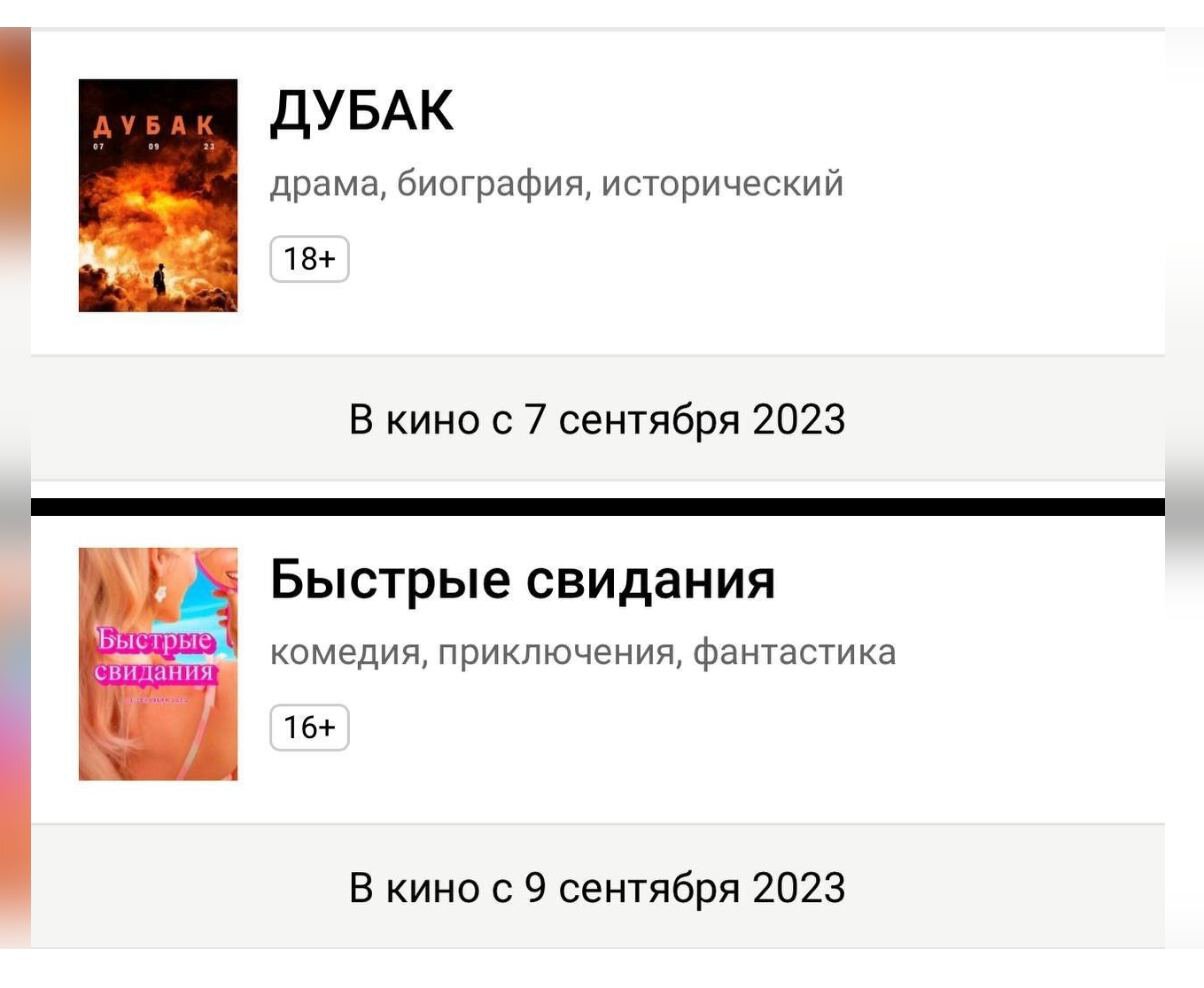 Один из столичных кинотеатров указал в расписании альтернативные названия фильмов: «Дубак» и «Быстрые свидания». В других ленты доступны под оригинальным названием.