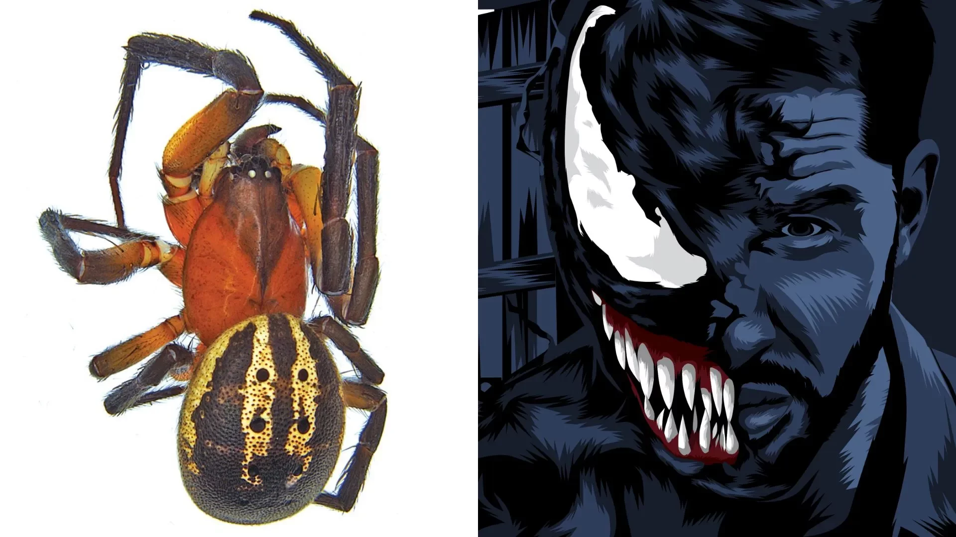 Австралийские ученые из университета Мердока обнаружили новый род пауков Venomius. Причиной для такого наименования послужили черные пятна на брюхе паука, которые напомнили ученым голову симбиота Венома.