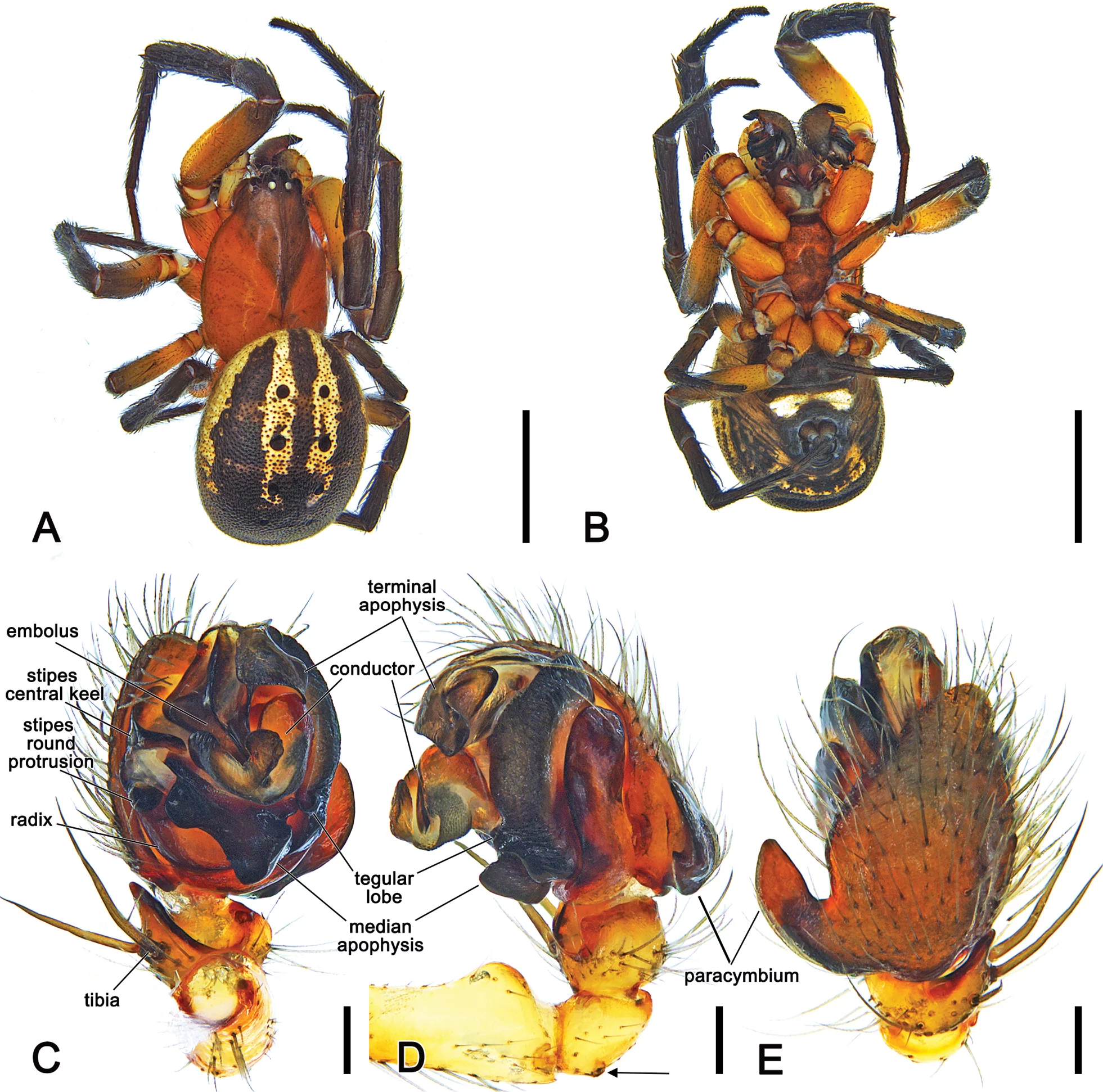 Род принадлежит к семейству пауков-кругопрядов (Araneidae), которые строят вертикальные круглые паутины для захвата добычи. Несмотря на сходство с родом Phonognatha, поскольку у обоих нет бугорков на брюшке, недавно описанные пауки отличаются своим поведением: они создают обтянутые шелком отверстия в ветвях деревьев для укрытия, а также имеют разные гениталии.