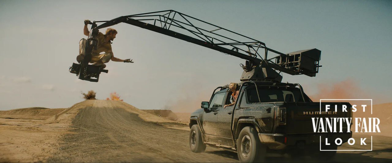 Райан Гослинг в роли дублера главной звезды на съемках на первых кадрах фильма «Каскадеры»