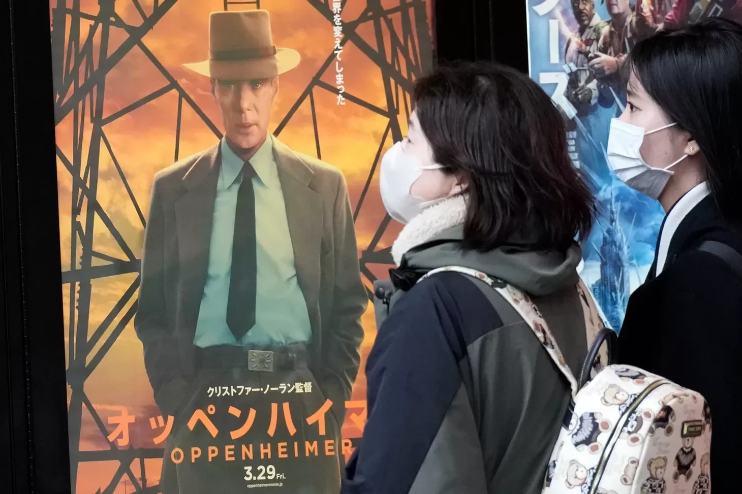 Японцы рядом с постером «Оппенгеймера»
