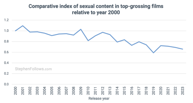 Он выяснил, что в 46% фильмов стали отсутствовать сексуальные сцены.