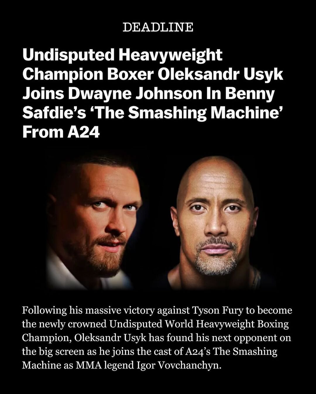 Ранее стало известно, что Усик сыграет в фильме «Крушащая машина» с Дуэйном «Скалой» Джонсоном в главной роли.