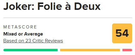 «Джокер: Безумие на двоих» получил 54 балла на Metacritic. Первый фильм оценили в 59 баллов