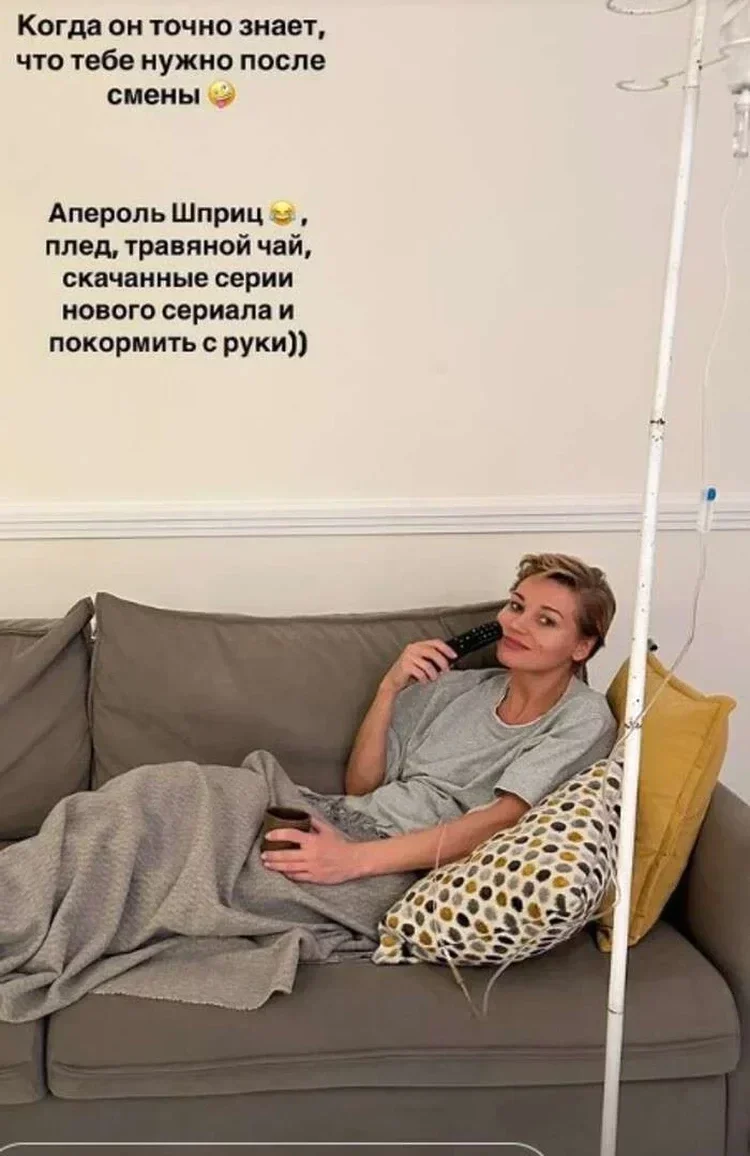«Когда он точно знает, что тебе нужно после смены. Апероль Шприц, плед, травяной чай, скачанные серии нового сериала, покормить с руки», – написал Кристина Асмус.