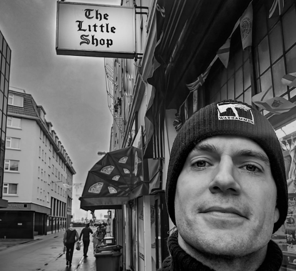 «Чтобы отпраздновать некоторые новости по вселенной Warhammer, я решил совершить паломничество в самое первое место, где я купил модели Warhammer более 30 лет назад... В «Маленький магазинчик» на моем родном острове Джерси!