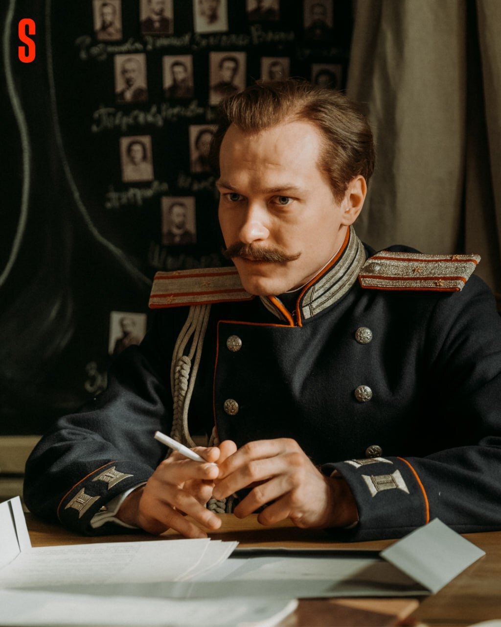 В картине снялся Юра Борисов, который сыграл молодого офицера царской охранки, особого отделения, занимавшегося политическим сыском.