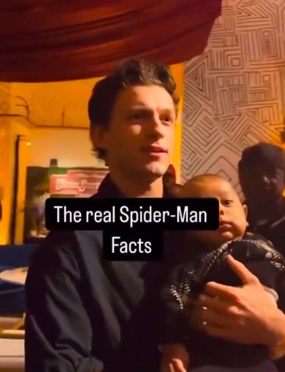 Они также опубликовали фотографию, на которой Том Холланд держит ребенка на руках, подписав ее «Настоящий Человек-Паук. Факты».