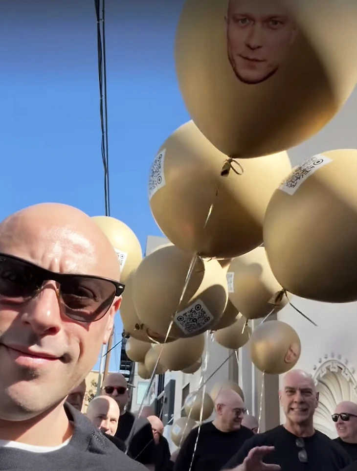 Комик и актер Ивэн Шафран организовал парад в Лос-Анджелесе, посвященный российскому актеру Юре Борисову. На нем появились лысые мужчины в черной одежде с золотистыми шарами с изображением Борисова.