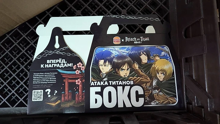 В рамках коллаборации в боксах можно будет получить фигурки 8 героев аниме. Также в сети ресторанов появятся фирменные стаканы с персонажами из «Атаки титанов».