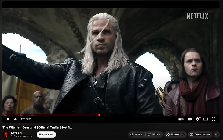 Трейлер четвертого сезона сериала «Ведьмак» вышел 7 октября. За это время он собрал 862 тысячи просмотров и 59 тысяч дизлайков. Количество негативных оценок в 3,7 раза больше, чем лайков – у трейлера их всего 16 тысяч.