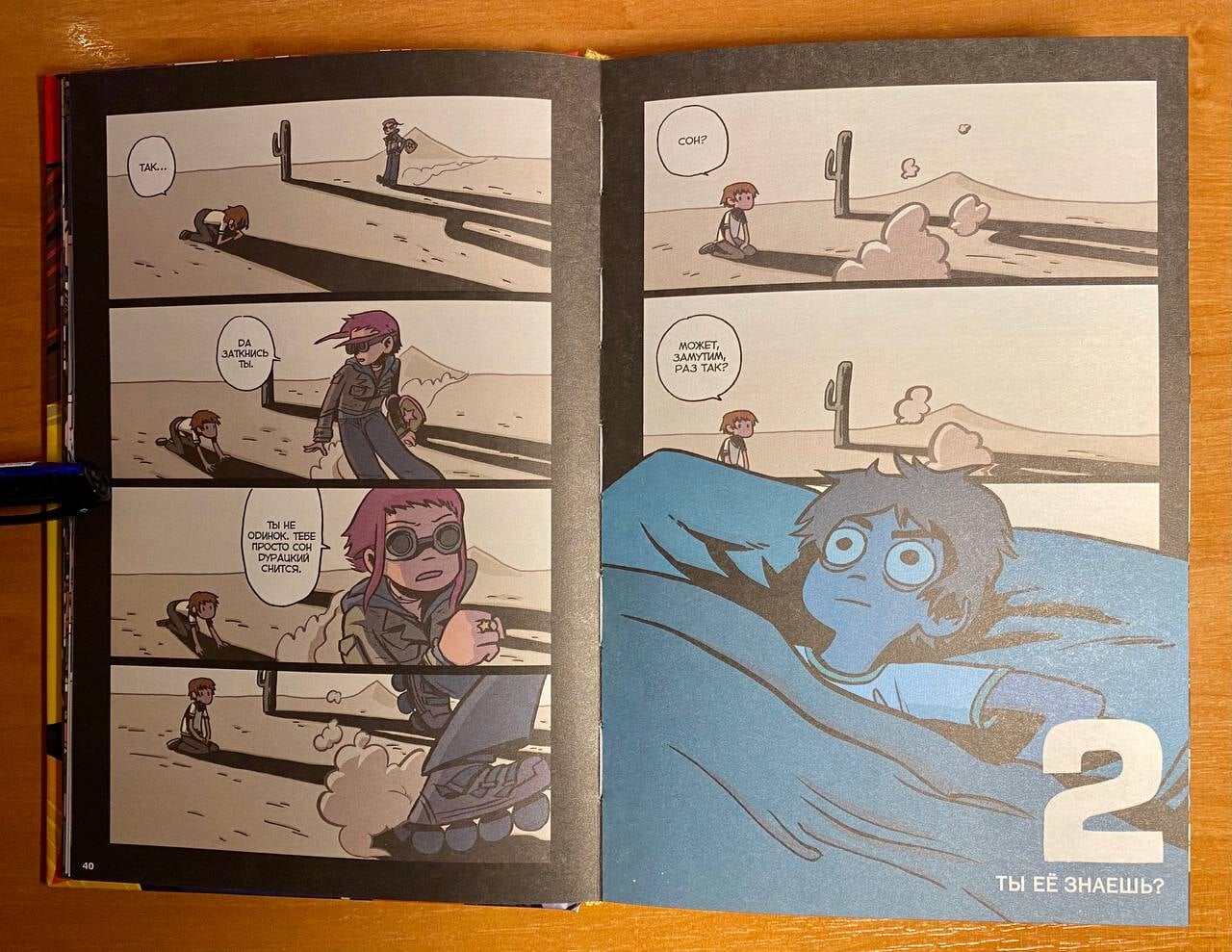 Зато уже в конце первой главы выяснится, что Скотту одиноко, о чем он сокрушается во сне, посреди пустыни. Мимо на роликах проносится сиреневолосая девушка – Скотт тут же предложит ей «замутить» и проснется со внезапной обсессией отыскать загадочную фигуру в реальности.