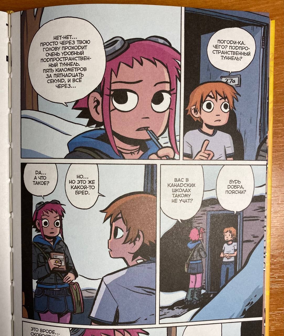 Юмор «Скотта Пилигрима» – еще одно качество, за которое фанаты обожают комикс. Пересказывать все шутки было бы кощунством, так что поверьте на слово (или прочтите пару глав на пробу): О’Мэлли очень остроумен.