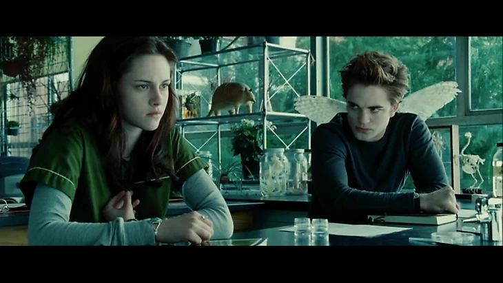 Если отбросить всю вампирскую тему – «Сумерки» – это фильм про любовную драму школьников. И работа камеры очень хорошо вписывается в это. Кроме бесконечных разговоров и мемного лица Беллы она показывает обстановку: рутинную, узнаваемую жизнь тинейджера.