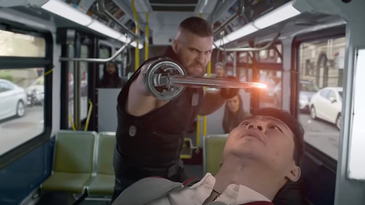Только после того, как на Шона – точнее, уже Шан-Чи – в обычном автобусе нападает румынский качок с гигантским механическим мачете вместо руки, фильм сворачивает с тропы комедии об ассимиляции и повседневности в сторону блокбастера о боевых искусствах. Герой отказывается от облика простого иммигранта и постепенно смиряется с насыщенным прошлым. Например, отец Шан-Чи – полумифический воин, сумевший в тайне захватить контроль над всеми государствами и проживший уже тысячу лет благодаря волшебным Десяти кольцам.