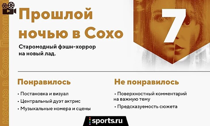 Впрочем, как и Эдгару Райту, возможно, не стоило браться за такую болезненную и актуальную тему, и я не вправе рассуждать об этом подробнее – уж точно не в рецензии. Вне остросоциального подтекста «Прошлой ночью в Сохо» – как минимум визуально интересный фильм, который едва ли пытается стать «новым словом» в чем-либо, но точно заслуживает просмотра.