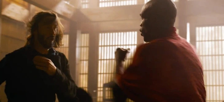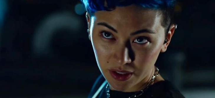 В то же время Багз присутствует в нескольких боевых сценах, стреляя в агентов и уворачиваясь от их пуль, что указывает на противоположный вывод. Она перепрыгивает с крыши одного дома на другой, делает сальто через полицейскую машину, пытаясь скрыться. И, самое впечатляющее, она появляется из бокового дверного проема, что позволяет ей бежать по стене и стрелять по агентам, преследующим ее и Морфеуса.