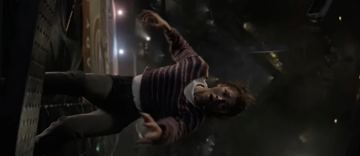 Не совсем ложь, но очевиднейшая обманка была во втором трейлере фильма. Там есть несколько кадров, на которых испуганная Эм Джей падает с огромной высоты и вот-вот разобьется, а Питер Паркер пытается ее поймать, но может не успеть – плавали, знаем.