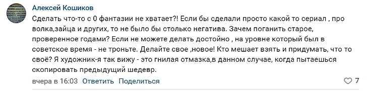 В паблике «Союзмультфильма» ВК мнения разделились: некоторым мультсериал все же зашел.