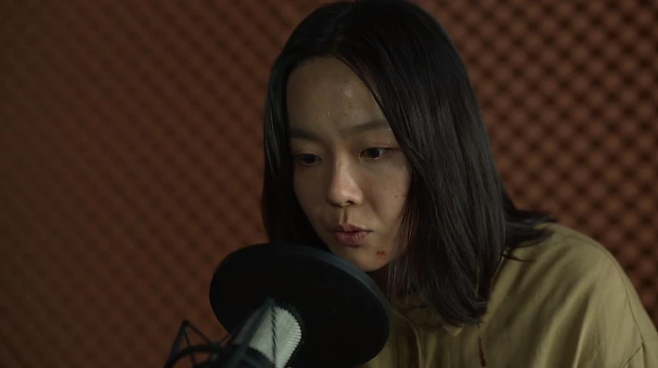 Концом шланга выбивает окно в студии – там запутался зомби, который вот-вот влезет в окно. Чхонсан, Кенсу и Сухек отбиваются, но второго царапает зараженный и у него идет носом кровь. Его помещают в отдельную комнату для записи звука – на этом настаивает Наен.