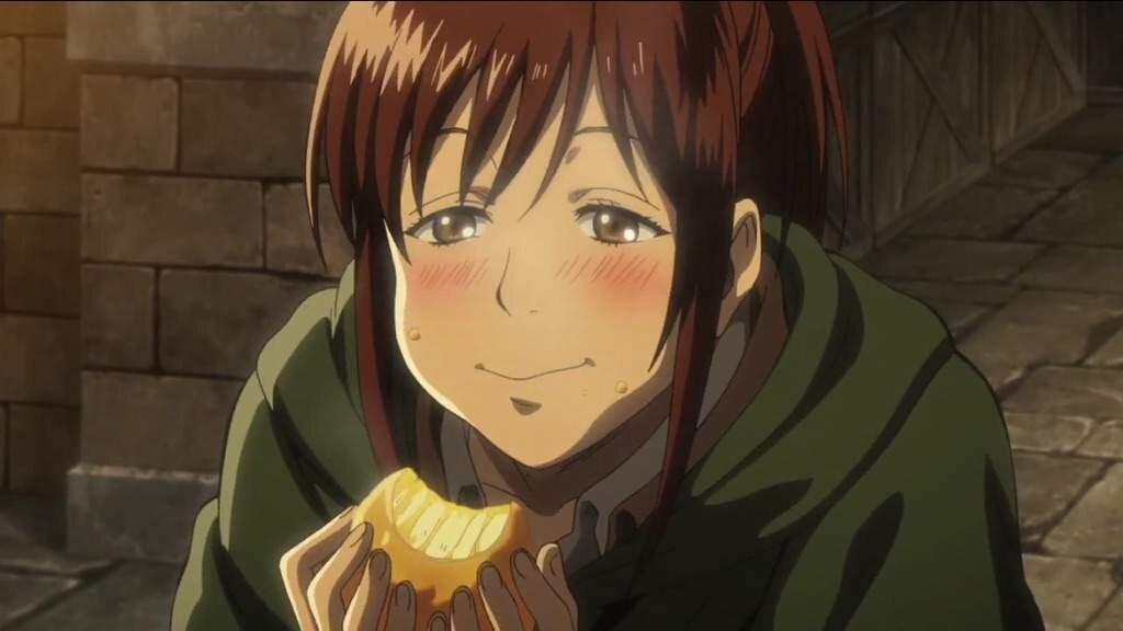 При всем своем легком безрассудстве она оставалась смелым солдатом, готовым пожертвовать жизнью за друзей. Она убила титана с помощью простого лука и стрел, защищая маленькую девочку. Ее доброта и любовь к еде перевешивали любую ненависть. Ей даже удалось подружиться с марлийцем Николой − тот был рад готовить всем, кто получал истинное наслаждение от его стряпни. Так сюжет свел двух добрых персонажей, которые хотели не воевать, а заниматься любимым делом (готовить и есть).