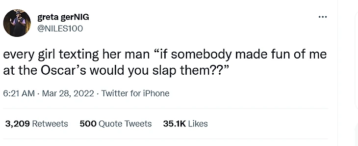 «Сейчас каждая девушка пишет своему парню: «Если бы кто-то смеялся надо мной на «Оскаре», ты бы его ударил?»