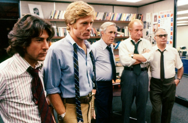 Фильм режиссера Алана Пакулы.отражает исторические события и связан со знаменитым Уотергейтским скандалом в 1973 году в Соединенных Штатах. В основу легла документальная книга репортеров газеты The Washington Post, которые занимались расследованием. К журналистам попадают материалы, указывающие на то, что представители администрации президента Никсона в отеле «Уотергейт», в штаб-квартире своих политических оппонентов установили тайное прослушивание. Репортеры начинают вести расследование, которое идет очень сложно. Но вскоре они знакомятся с тайным свидетелем, обладающим ценными сведениями. Фильм был удостоен четырех «Оскаров», а в главных ролях снялись великолепные актеры Дастин Хоффман и Роберт Редфорд.