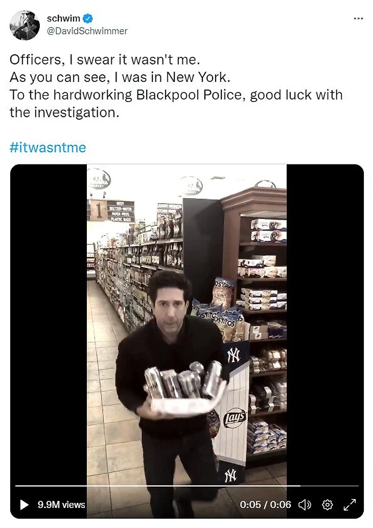 В 2018 году актер из-за презабавной случайности попал во все таблоиды. В британском городе Блэкпул из магазина умыкнули ящик пива. Воришка попал на камеры, где был ну очень похож на звезду «Друзей». Актер снял шутливое видео, где проделывает тот же трюк, но в Нью-Йорке и желает британской полиции поймать злоумышленника как можно скорее, что снимет с него все подозрения!