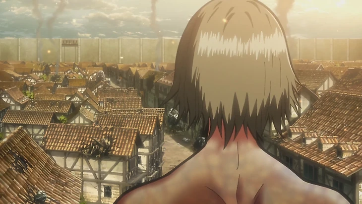 На протяжении многих серий произведение оставляет в напряжении – никогда не знаешь, кто погибнет следующим в новой битве, ведь несмотря на размеры титаны быстры и резки. Сражения показаны изобретательно и заставляют прекратить моргать до момента, пока сцена не закончится. Кроме того, вместе с движением Эрена и других героев по миру завеса тайны противостояния людей с титанами постепенно будет открываться, всё глубже погружая вас в этот страшный, но всё же увлекающий мир. И по прошествии четырёх сезонов перед вами откроется не просто история ужасной войны мерзких великанов с бесстрашными людьми, полная эпических битв и трагических смертей, но и политический детектив, вступающий в диалог со зрителем о человечности с помощью аллюзий на реальные события.