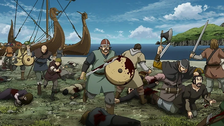 Зато аниме выполнено в понятном сеттинге, и в нем есть отличные сюжет, персонажи и атмосфера. «Сагу о Винланде» не назовешь триллером. В ней нет ни шокирующих сюжетных поворотов, ни запутанных интриг. Но мангака и сценаристы выстроили сюжет так, что он течет естественным образом, оставаясь сложным, но логичным, без роялей в кустах и взявшихся из ниоткуда мотиваций. Эпоха Темных веков в аниме показана с мрачным, почти ожидаемым реализмом, который не оставляет зрителя равнодушным. От нас не скрывают ни ужасов войны, ни банальное зло, ни людские пороки: жадность, узколобость, жестокость.