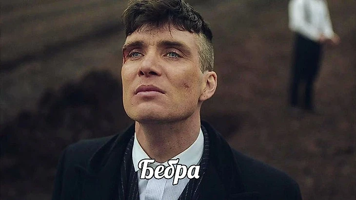 Томас Шелби неожиданно стал популярен благодаря мемам. Все началось с картинки, где Шелби смотрит вдаль, а внизу написано «Бебра» – это тоже популярный мем, хотя никто не знает, что значит слово «бебра». Фразу «нюхай бебру» используют в смысле «отвали» или «да пошел ты».