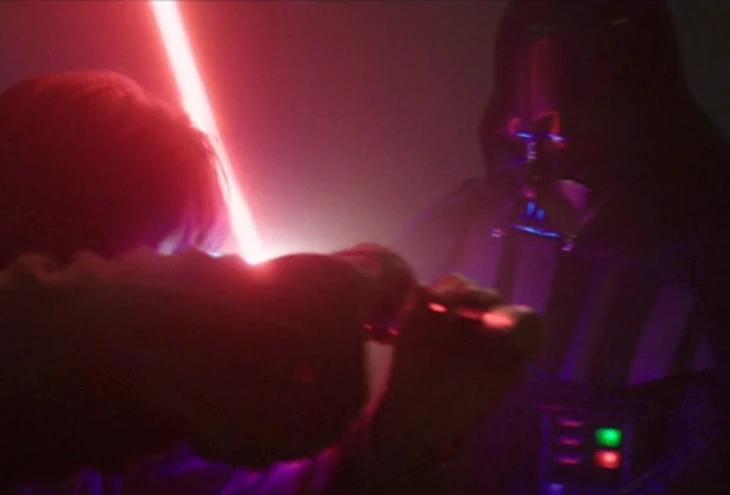 Теперь добавим антагониста с явной мотивацией и второго соперника со скрытой мотивацией. На роль первого возьмем продающегося и популярного Вейдера. Вейдер будет сильнее Оби-Вана, но когда Оби-Ван снова обретет силу благодаря Лее, он победит ситха. Плевать, что это ни в одном месте не вяжется с каноном: нам же надо как-то закрыть арку Оби-Вана! Почему не заставить его уделать Вейдера и уйти, оставив умирать (СНОВА!)