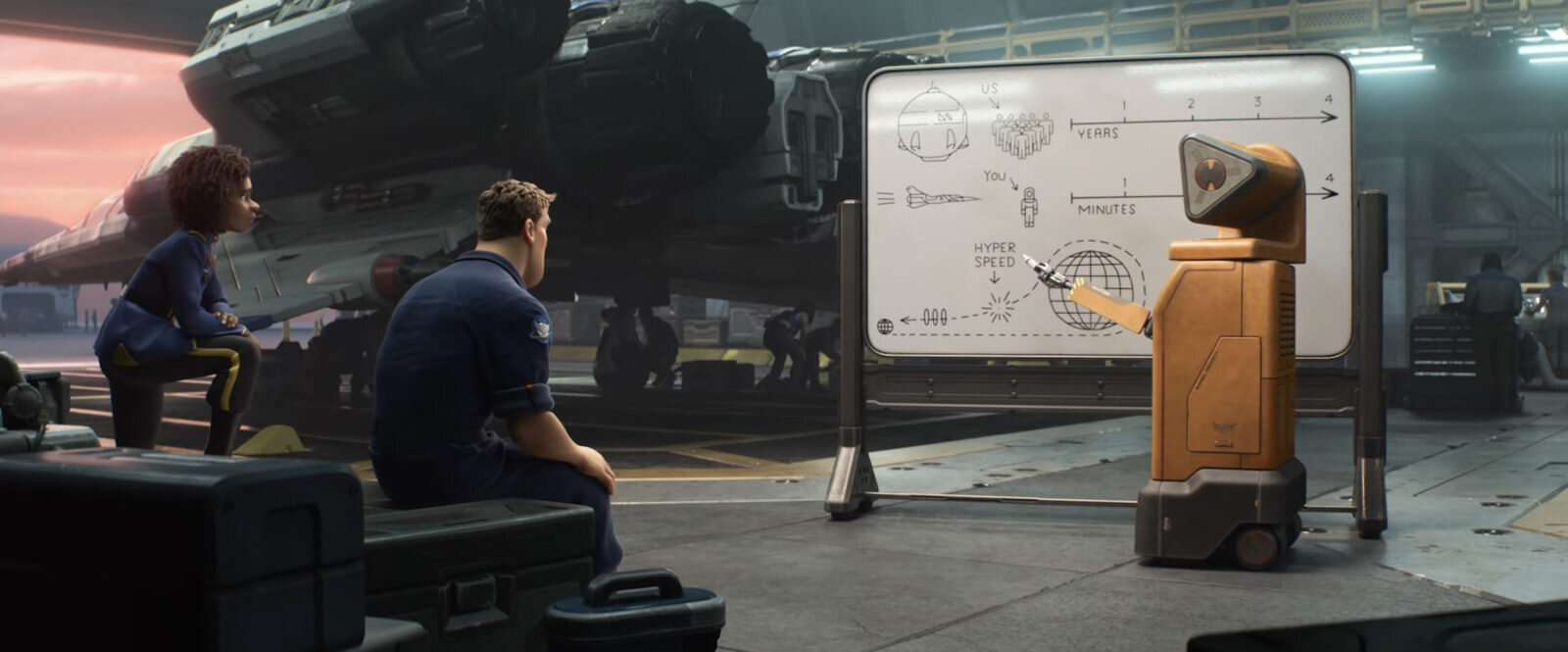Сюжет фильма очень простой. То есть я буквально предугадывал каждое действие персонажей и все повороты истории. А еще у меня вызвало вопросы положение Базза в истории. Так, Лайтер – герой, которого космические рейнджеры недостойны, но в то же время этот герой им и не очень то и нужен. Создается ощущение, что Базз делает что-то не особо необходимое остальным, жертвуя многим. Он пытается создать топливо и улететь с планеты, но за 62 года люди уже неплохо прижились и адаптировались. Это не делает «Базза» плохим мультфильмом, скорее немного скучным. К счастью, продолжительность ленты в 100 минут и захватывающая картинка отвлекли от провисаний и нелогичностей сюжета.