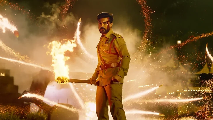Пролог идет без малого 45 минут. В первых сценах зритель знакомится с главными героями – Бхимом (НТР мл.) и Раджу (Рам Чаран Теджа). Без лишних слов они показывают боевое мастерство и нечеловеческую силу. Деревенский охотник Бхим одолевает тигра в джунглях, повалив его голыми руками. А Раджу, служащий британской полиции, разгоняет тысячный несанкционированный митинг с одной только дубинкой в руке.