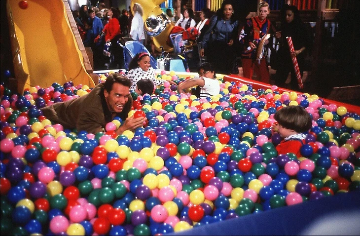 Для Арнольда явно важна тема уделения внимания семье: он нередко к ней возвращается и вовсю пропагандирует. На этот раз это еще более комедийный проект: герой Шварценеггера обычный клерк и никакими сверхнавыками не обладает. Конечно, кроме того, что он полнейший разгильдяй с ужасной памятью. Говард будто чувствует, что и жена подустала от его проколов, и маленький сын больше не сможет ему доверять – так что игрушку придется достать любой ценой здесь и сейчас. В комедии есть и несколько забавных антагонистов: сосед, мечтающий о жене Говарда, и двинутый почтальон, который грозится взорвать бомбу только, чтобы Турбомена отдали ему. В конце Железный Арни ненадолго даже превращается в аналог Железного человека: летает, спасает людей и побеждает злодея в трико.