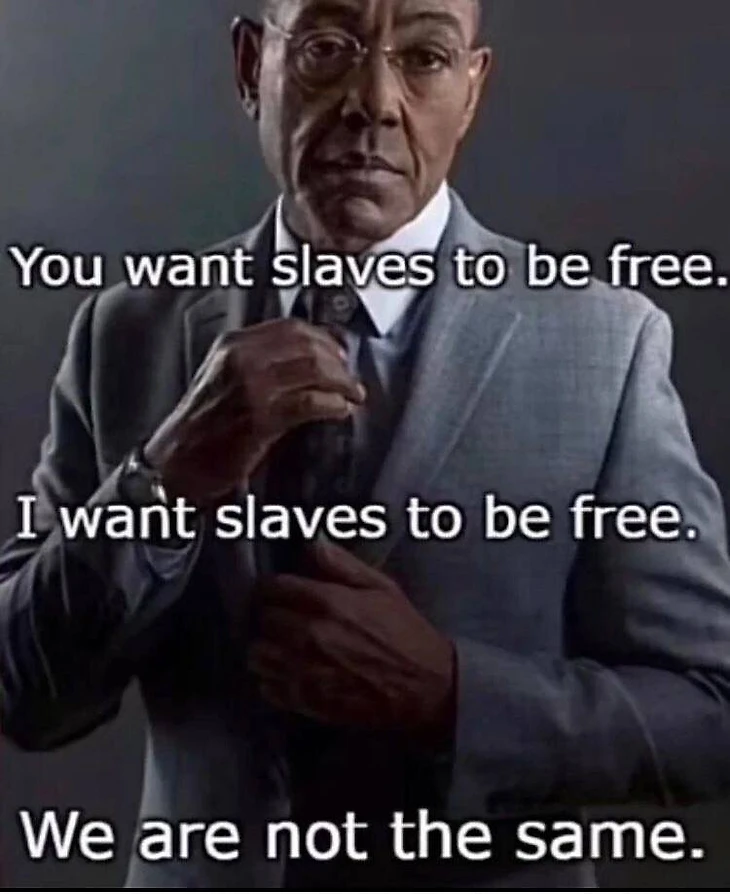 «Ты хочешь, чтобы рабы были свободны. Я хочу, чтобы они были бесплатными. Мы разные».