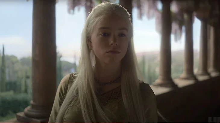 Понеслась. Идет девятый год правления Визериса (Пэдди Консидайн), о ком зритель ранее слышал только из легенд и сказаниях Вестероса. Его жена беременна. Их первенец – дочь Рейнира (Милли Олкок), поэтому все в Семи Королевствах уповают на наследника мужского пола. Рейнира, хоть и дочка безропотная, но честолюбивая – без спросу кружит в облаках на янтарной драконихе Сиракс и мечтает о рыцарском (читай: мужском) уделе.