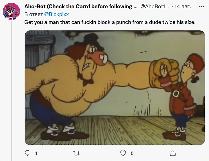 Так вот, за последний месяц «Остров сокровищ» загадочным образом стал очень популярен среди западных пользователей. Как водится, все началось с треда в твиттере. Карикатурист под никнеймом Bickpixx 13 августа поделился сценкой, в которой хрупкий Джим Хокинс дубасит огромного пирата так сильно, что тот сдувается.