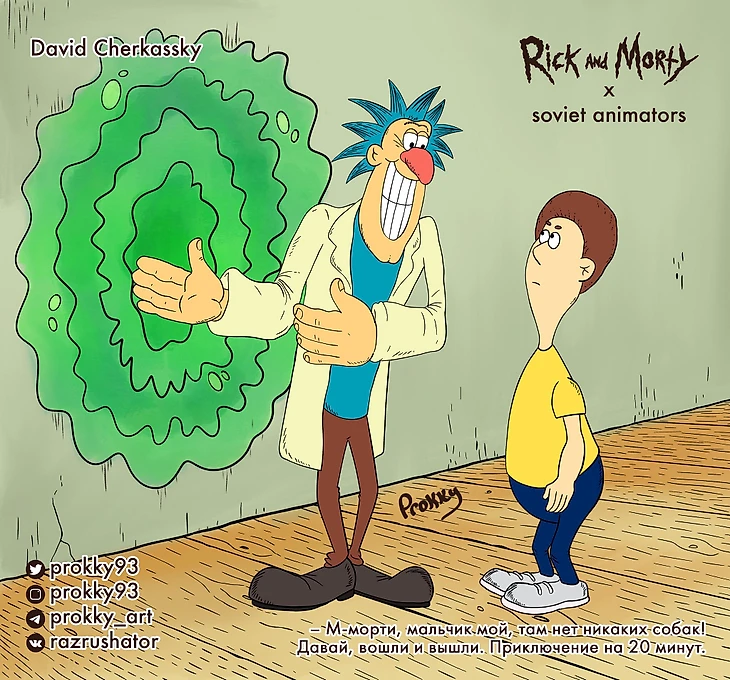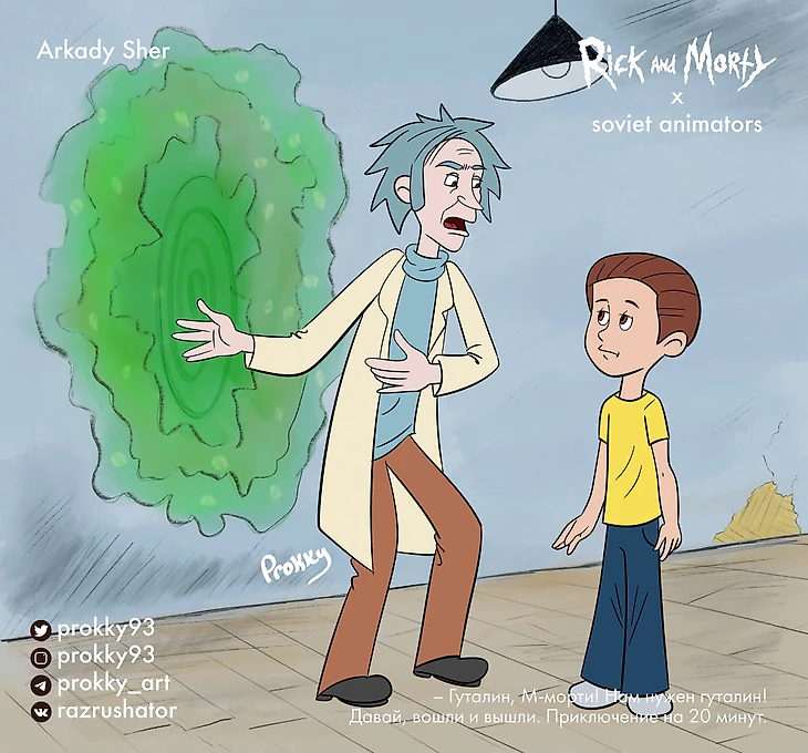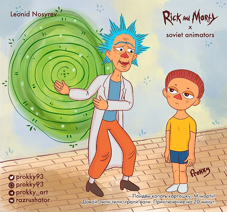Тоже ждете очередную порцию приключений «Рика и Морти»? Аниматор студии «Союзмультфильм» Прокопий Уляшов к выходу шестого сезона нарисовал главных героев мультика в стиле советских мультипликаторов. Об этом он рассказал подписчикам в твиттере – на эти и остальные работы художника можно посмотреть в аккаунте @prokky93.