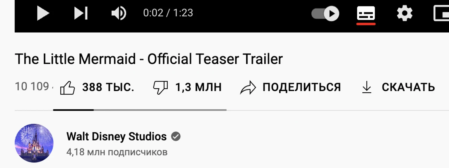 Тизер новой «Русалочки» утонул в дизлайках. В комментариях стебут творческую импотенцию Disney