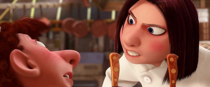 Колетт – настоящая француженка. Она крутая, раскованная, дерзкая, водит скутер. Вдобавок это самая суровая королева на кухне ресторана Gusteau. Но, как выясняет Лингвини, под этой непроницаемой броней скрывается нежная и романтичная натура. Как все же непредсказуема любовь: еще вчера эта девчонка готова была пригвоздить тебя к столу поварскими ножами, а сегодня ты уже учишь ее кататься на роликах по улицам Парижа.