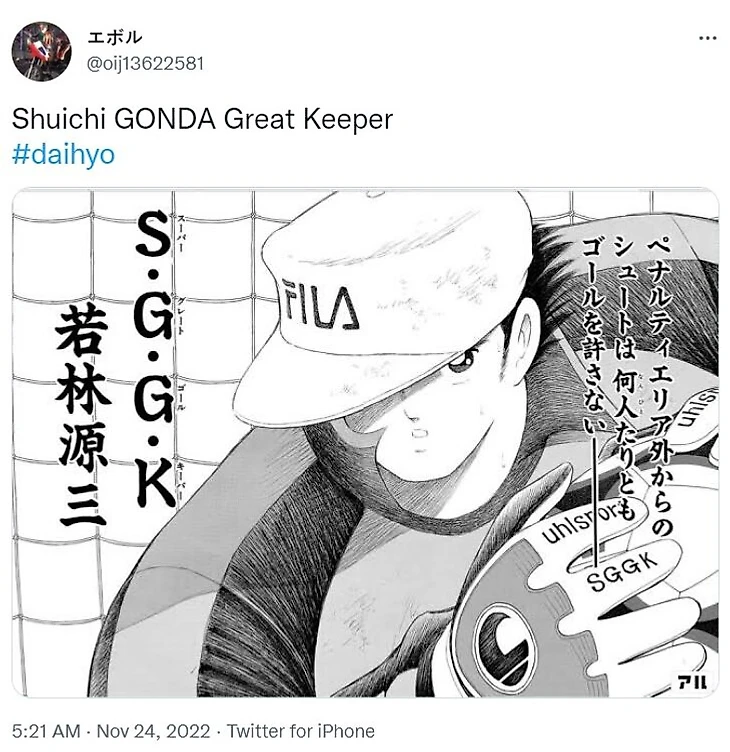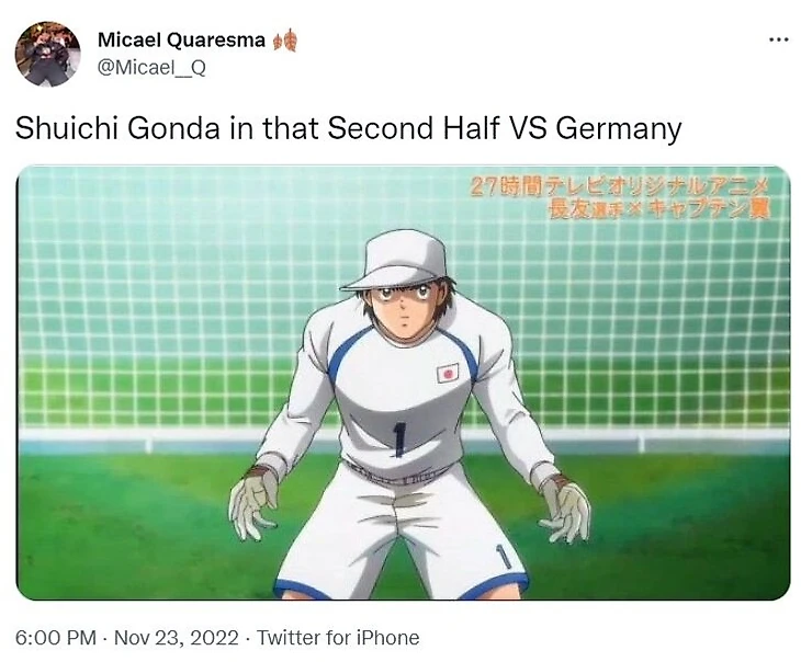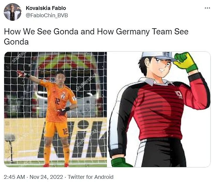 После матча с Германией Twitter переполнили посты, где Гонду сравнивали с голкипером из «Капитана Цубасы».