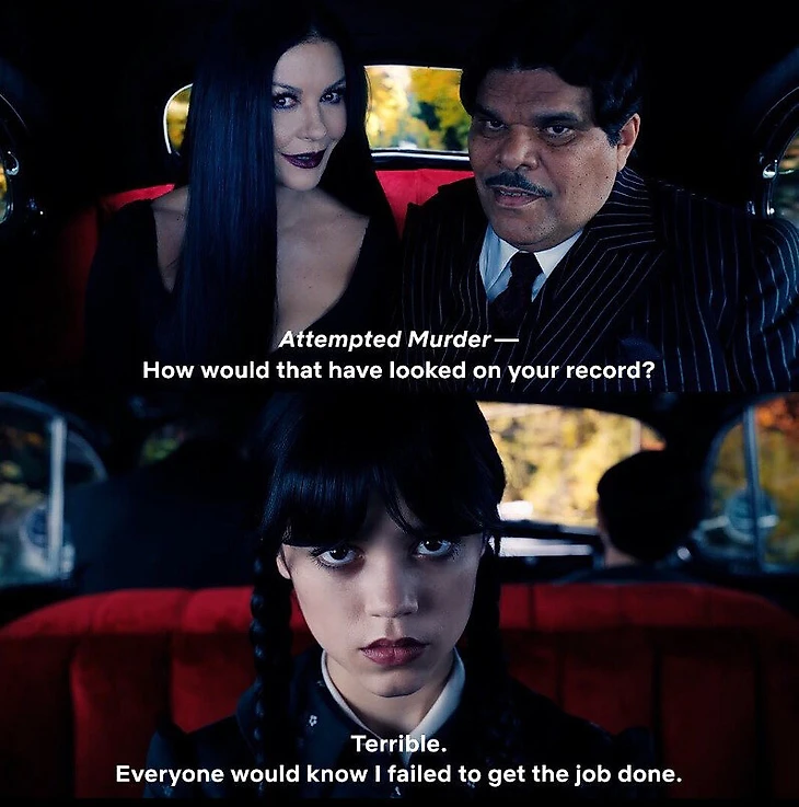 Сюжет одним предложением: Уэнсдэй переводят в академию «Невермор», теперь ей предстоит найти общий язык с одноклассниками, овладеть экстрасенсорными способностями, остановить серию убийств в городке и разгадать тайну родителей.