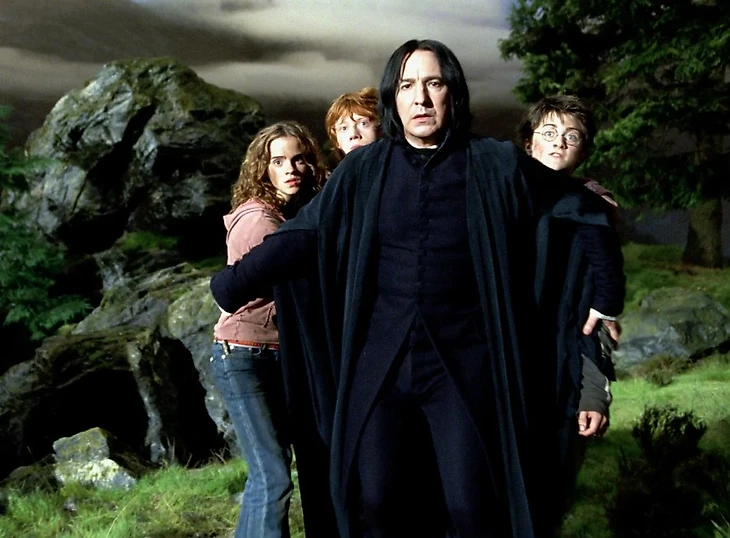 Поступив в школу, он знакомится со своими новыми друзьями, Роном Уизли (Руперт Гринт) и Гермионой Грейнджер (Эмма Уотсон). Здесь же мы впервые видим загадочного Северуса Снейпа (Алан Рикман) и уже пожилого директора Хогвартса Дамблдора (теперь его играет Ричард Харрис). Это один из самых популярных фильмов в истории мирового кино.