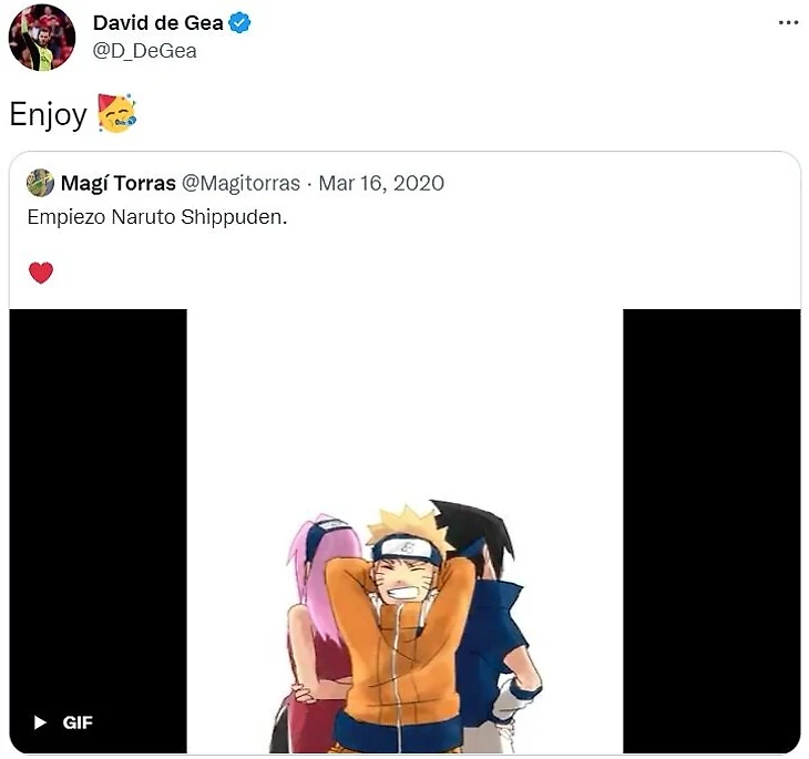 Среди главных фанатов «Наруто» – Давид Де Хеа, вратарь «Манчестер Юнайтед» и сборной Испании. Он носит футболку с Саске…
