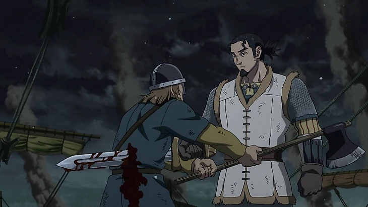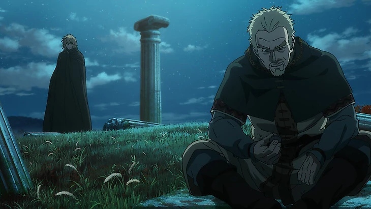 С побега прошло 15 лет, но бывшие союзники все еще помнят о предательстве. В начале аниме уважаемый датский воин заманил Торса в ловушку: герой поколотил врагов и почти спасся, но затем пожертвовал собой ради сына.